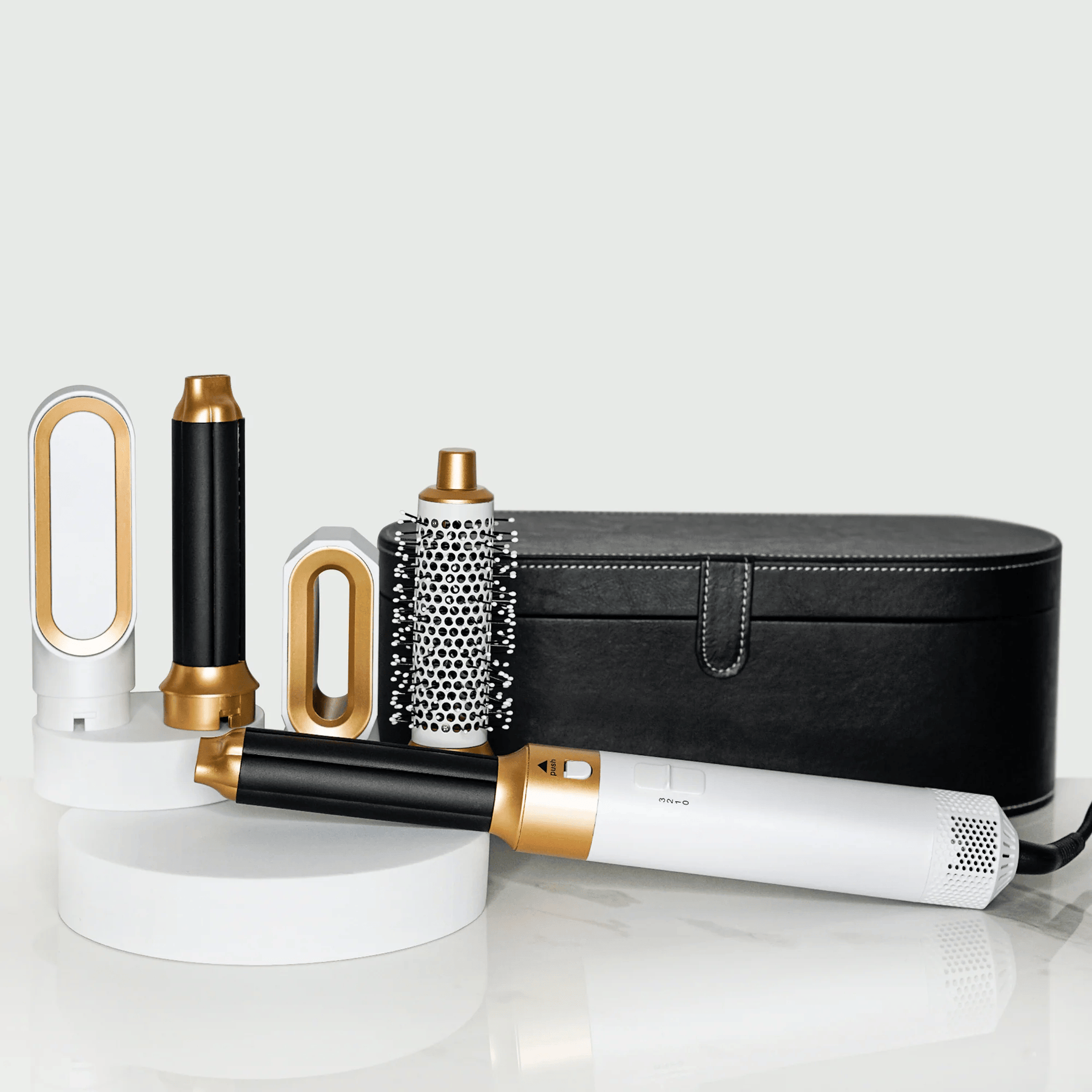 Quando desenvolvemos o Airstyler Pro, certificámo-nos de que era adequado para todos os tipos de cabelo. Independentemente do tipo e do comprimento do cabelo, o Airstyler, com os seus 5 acessórios diferentes, proporciona-lhe a máxima flexibilidade ao modelar o seu cabelo.